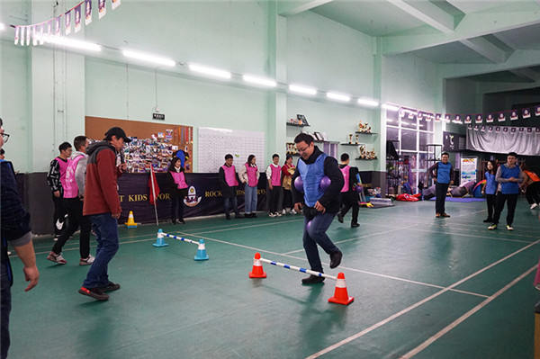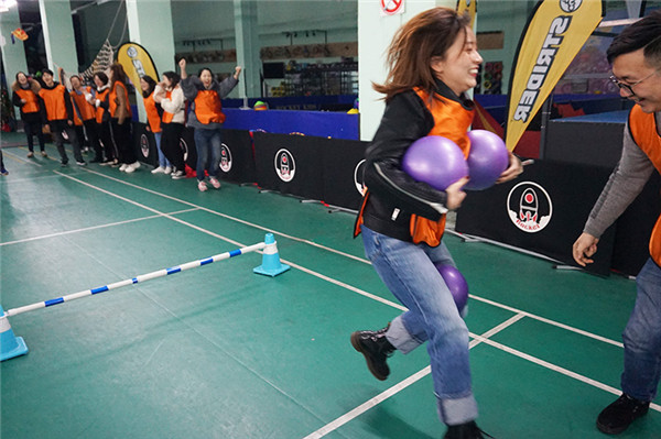 “企鵝漫步”接力 團(tuán)隊(duì)越來越默契 “加油”、“穩(wěn)住”、“漂亮” 隊(duì)員之間氣氛越來越融洽